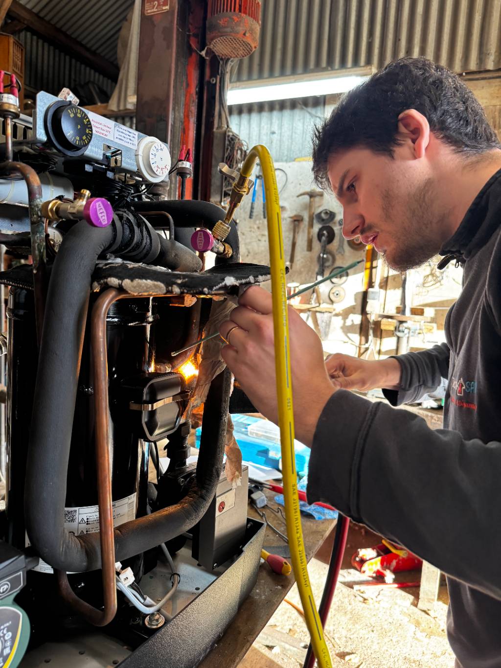 Avant toute remise en service, une mise en pression au nidron a été effectuée à 31 bar pendant 30 minutes. Ce test permet de vérifier l’absence de fuite sur le circuit frigorifique : aucune anomalie détectée.